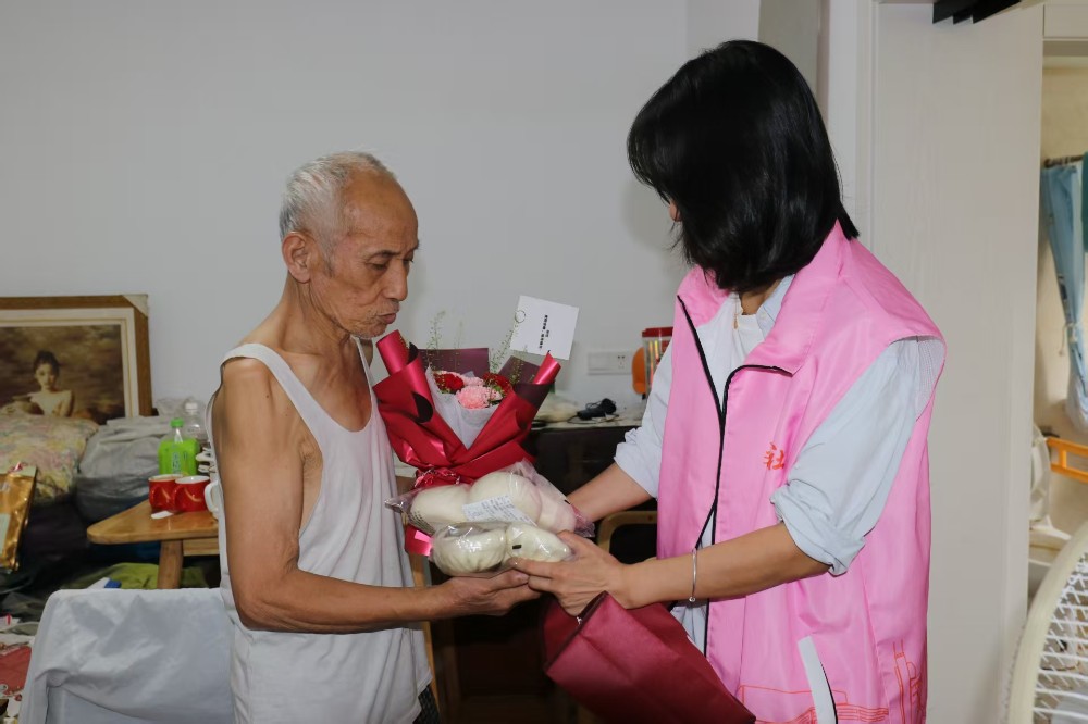 活动后,社工和志愿者们将老人们亲手制作的面点、插花作品精心分装,打包成一份份“爱心礼包”,分组上门送至辖区内高龄、独居及行动不便的老人家中。